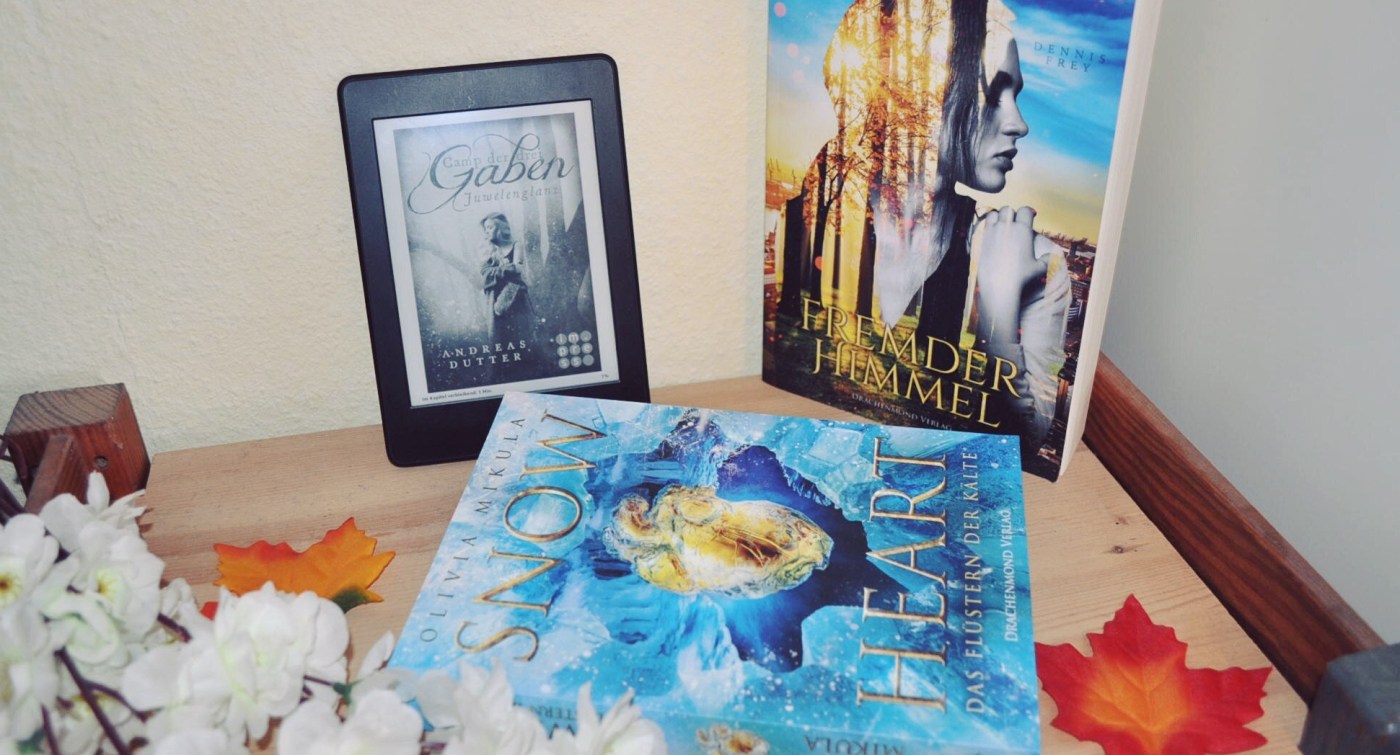 Das sind insgesamt 1.435 Seiten, also nur 46 im Schnitt pro Tag. Das ist ziemlich wenig, was mich etwas traurig macht. Nicht, weil es um Menge geht, sondern weil ich einfach sehr gerne lese und mich nicht ganz wie ich selbst fühle, wenn ich es nicht so tue. Aber dafür habe ich diesen Monat viele Kontakte geknüpft (nicht nur auf der FBM), der Fokus lag einfach anders. Die Durchschnittsbewertung liegt bei 4 Sternen, was immerhin sehr gut ist. Bis auf Rubinsplitter fand ich die Bücher echt alle sehr gut!